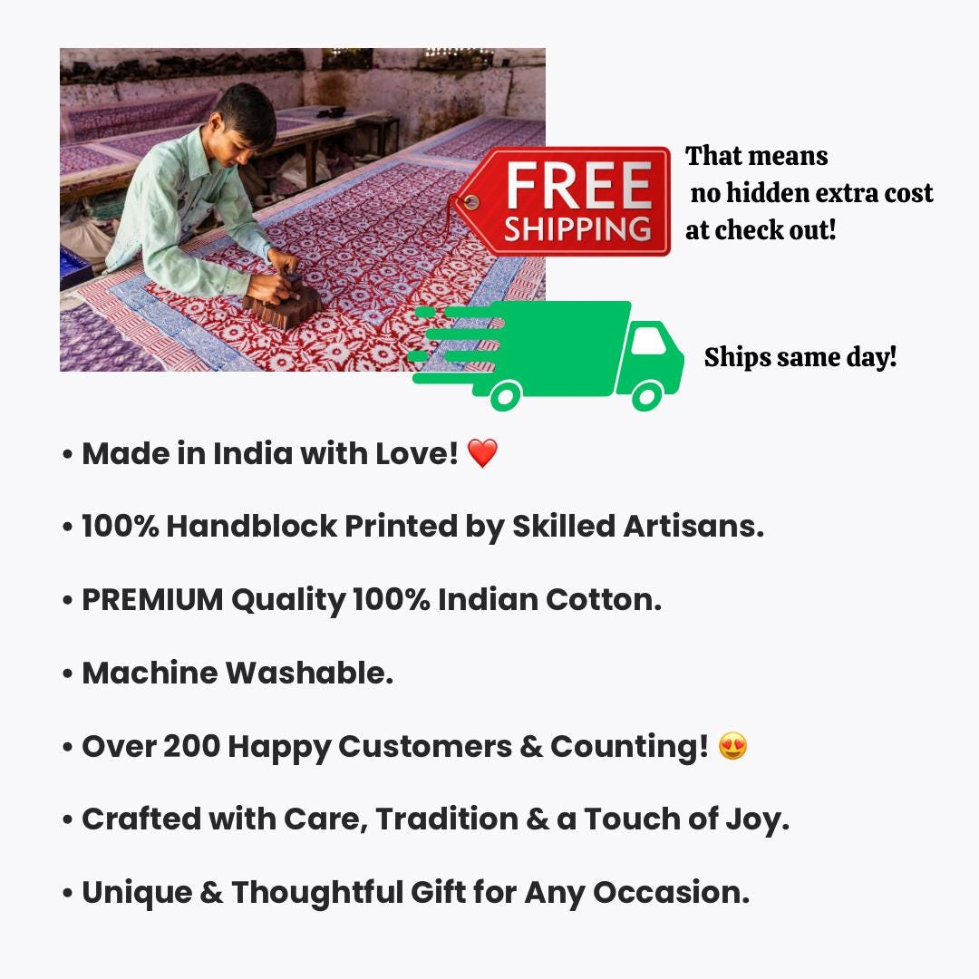 The colors in the pictures and product might vary a little as per your phone screen. A little misprint in any product is the beauty of human involvement in the process of hand block printing.