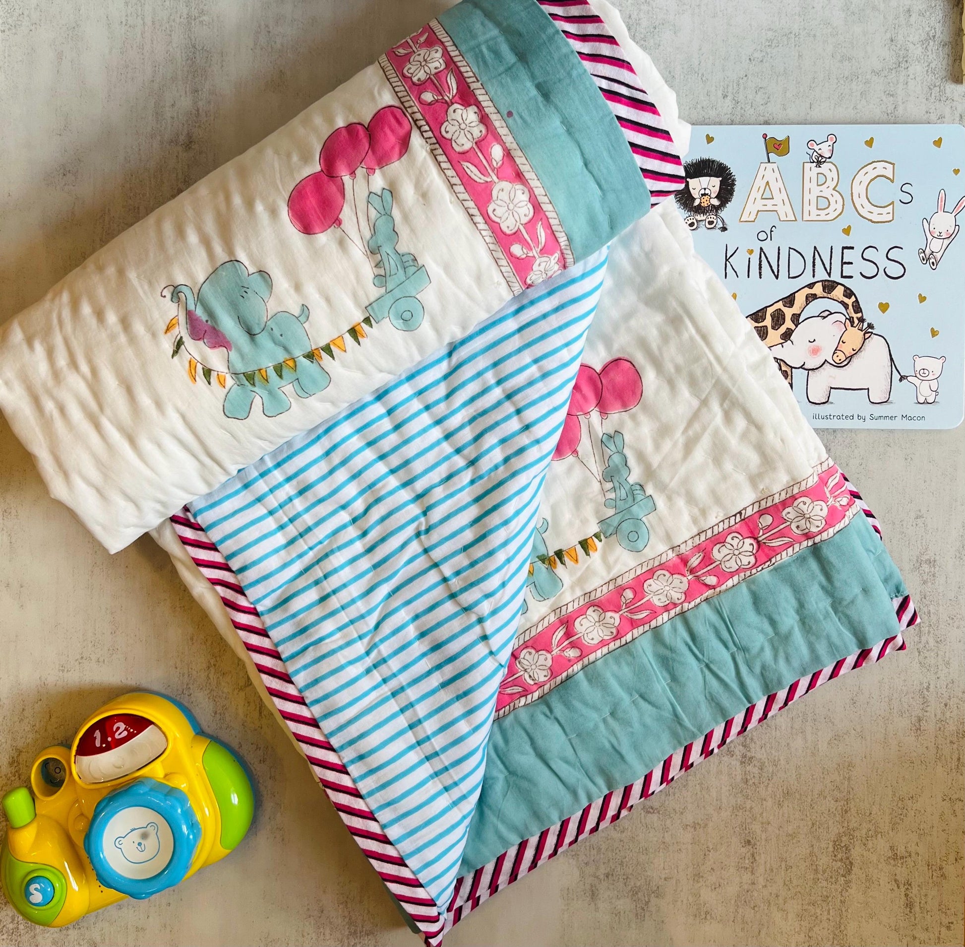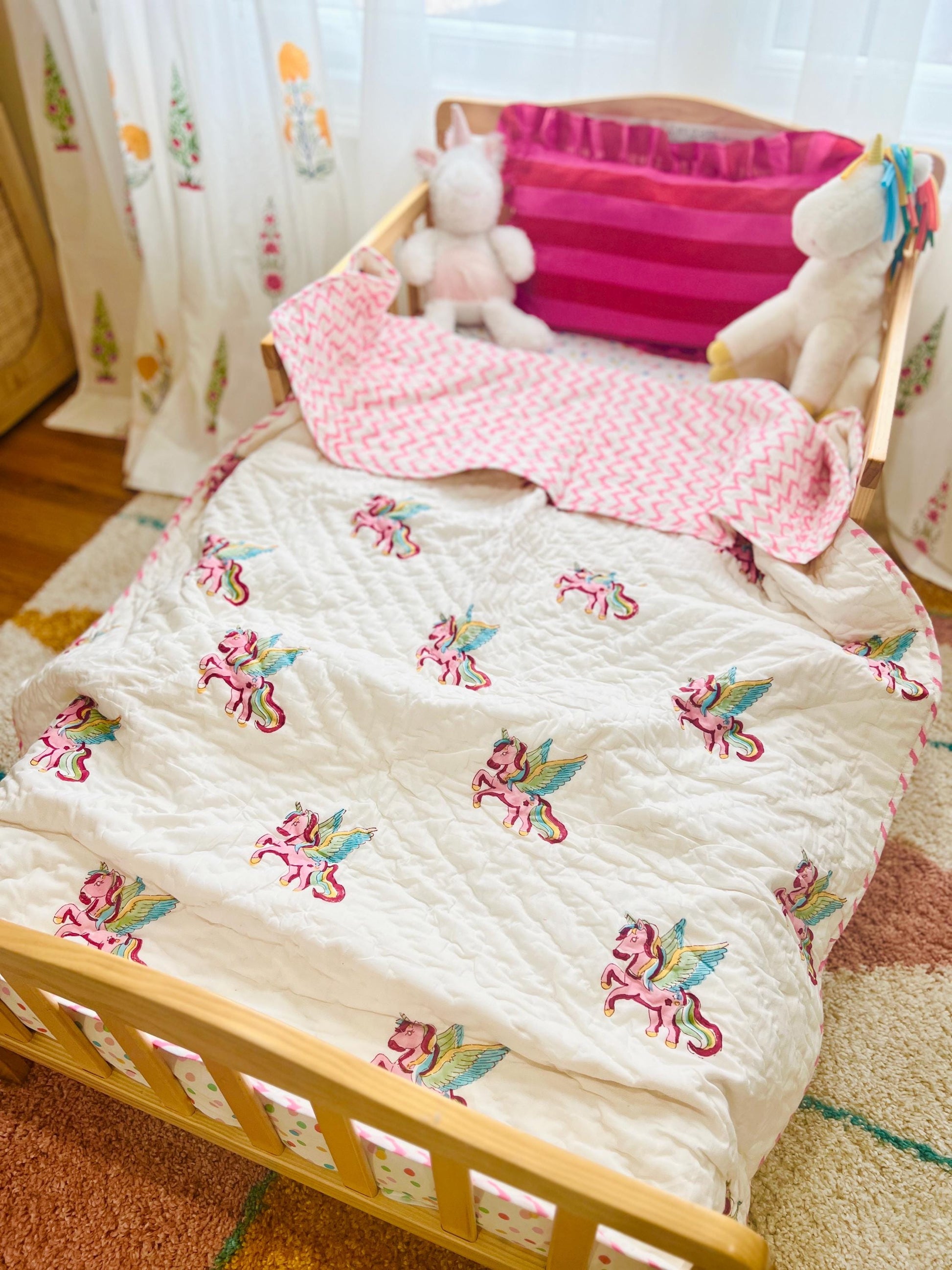 Toddler Quilt Soft Cotton Blanket Jaipur Razai Kids Nursery Decor, Baby Birthday Gift Ideas, Kids Blanket Block Printed Indian Print Quilt